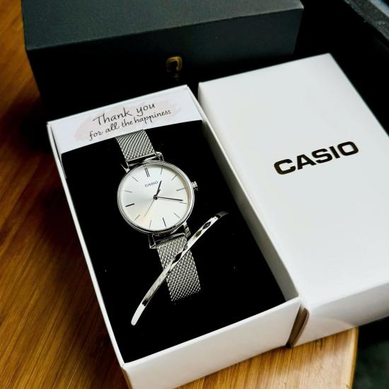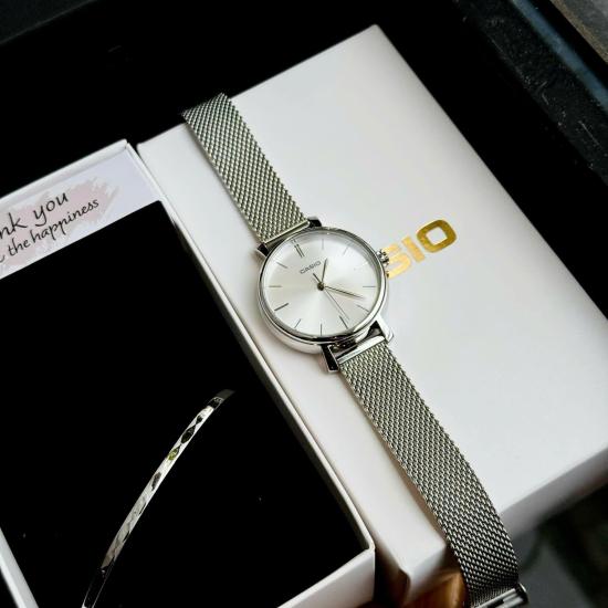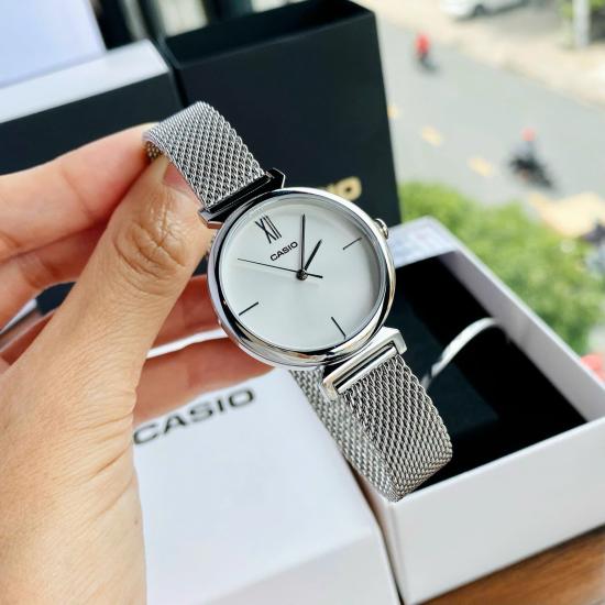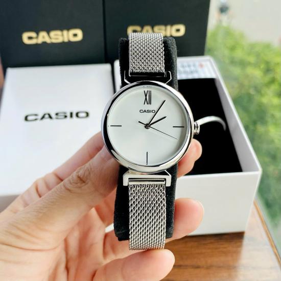 Đồng hồ Casio LTP-2023VM-7CDR thuộc dòng Casio nữ dây kim loại mới ra mắt trong thời gian gần đây, dây đeo dạng lưới, đồng hồ casio 3 kim, nền mặt màu trắng, chống nước đi mưa rửa tay thoải mãi, size mặt 30mm, đặc biệt tặng kèm vòng đeo tay sang trọng.
